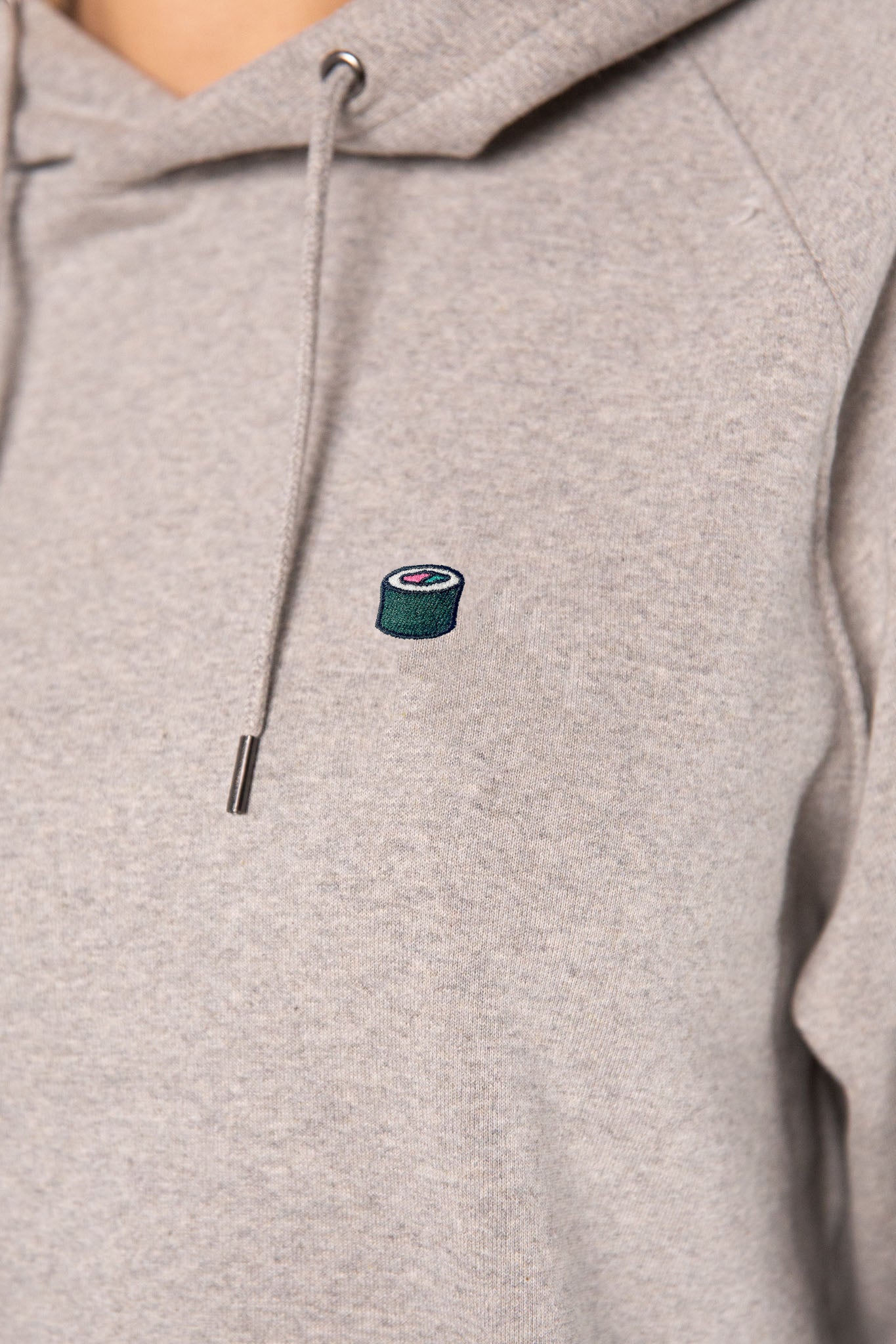 Vegane Bio-BaumwolleSuper hochwertiger Bio Baumwoll Frauen Hoodie mit schwerem Stoff (350gsm) und gesticktem Sushi Maki Design
